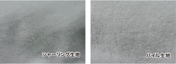 - 一般的なパイル生地はループ部分にインクが溜まってしまうため、質感が損なわれたりにじみが広がってしまいます。シャーリング生地はインクのにじみが少なくプリント面がきれいに表現できるように、タオルの表面をカット加工されたプリントタオルに適した生地です。