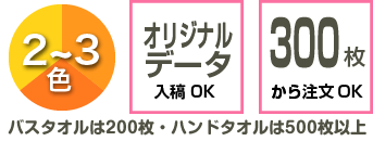 - タオル生地へのプリントは紙ベースと違い色ブレ(濃淡)が生じる場合がございます。また、モニターやプリンターの環境により発色が異なる場合がございます。