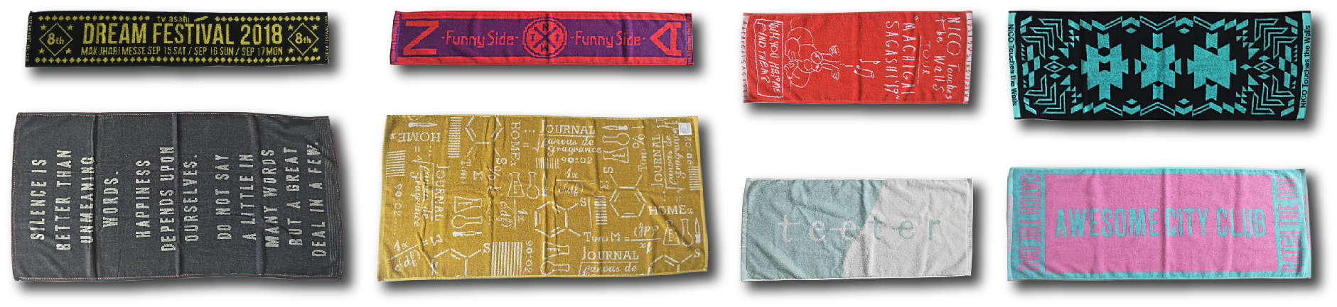 オリジナルデザインを最も表現豊かにプリントできる製法!小ロット「1枚から製作可能」の注文に最適です。色数の制限がなく写真やグラデーションを使ったカラフルなタオルが作れます。品質重視ならインクが毛中まで浸透し、発色がよくプリント面も柔らかい”染料”、価格重視なら生地の表面にインクを付着させシャープな表現可能な”顔料”の2種類から選べます。※濃色の場合、顔料は染料に比べ、比較的薄目の仕上がりになります。